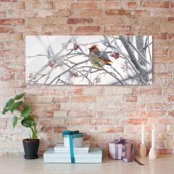 Bilderwelten Tableau en verre Jaseur dans un arbre – Blanc – 125 x 50 x 0,4 cm