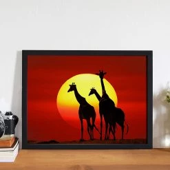 Any Image Tableau dĂ©co Sunset Giraffes Silhouette – HĂȘtre massif / Plexiglas – 42 x 32 cm