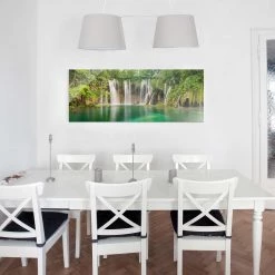 Bilderwelten Tableau en verre Cascade Plitvicer Seen – Vert – 80 x 30 x 0,4 cm – 80 x 30 cm