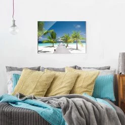 Bilderwelten Tableau en verre Catwalk to Paradise – Bleu – 80 x 30 x 0,4 cm – 80 x 30 cm
