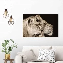 Reinders Tableau déco Lion et lionne – Bois manufacturé – Noir – 90 cm x 60 cm x 2 cm