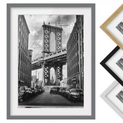 Bilderwelten Tableau déco pont de Manhattan III – Partiellement en pin massif – Gris – 50 x 70 cm