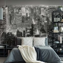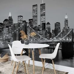 A.S. CrĂ©ation Papier peint Brooklyn Bridge Skyline – – Noir / Gris / Blanc – 3,66 x 2,54 cm