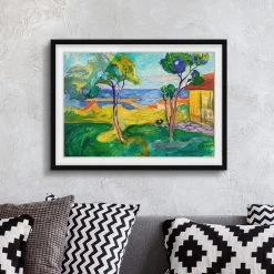 Bilderwelten Tableau Munch, Jardin de Asgardstrand II – Papier / Pin – Vert – 100 x 70 cm