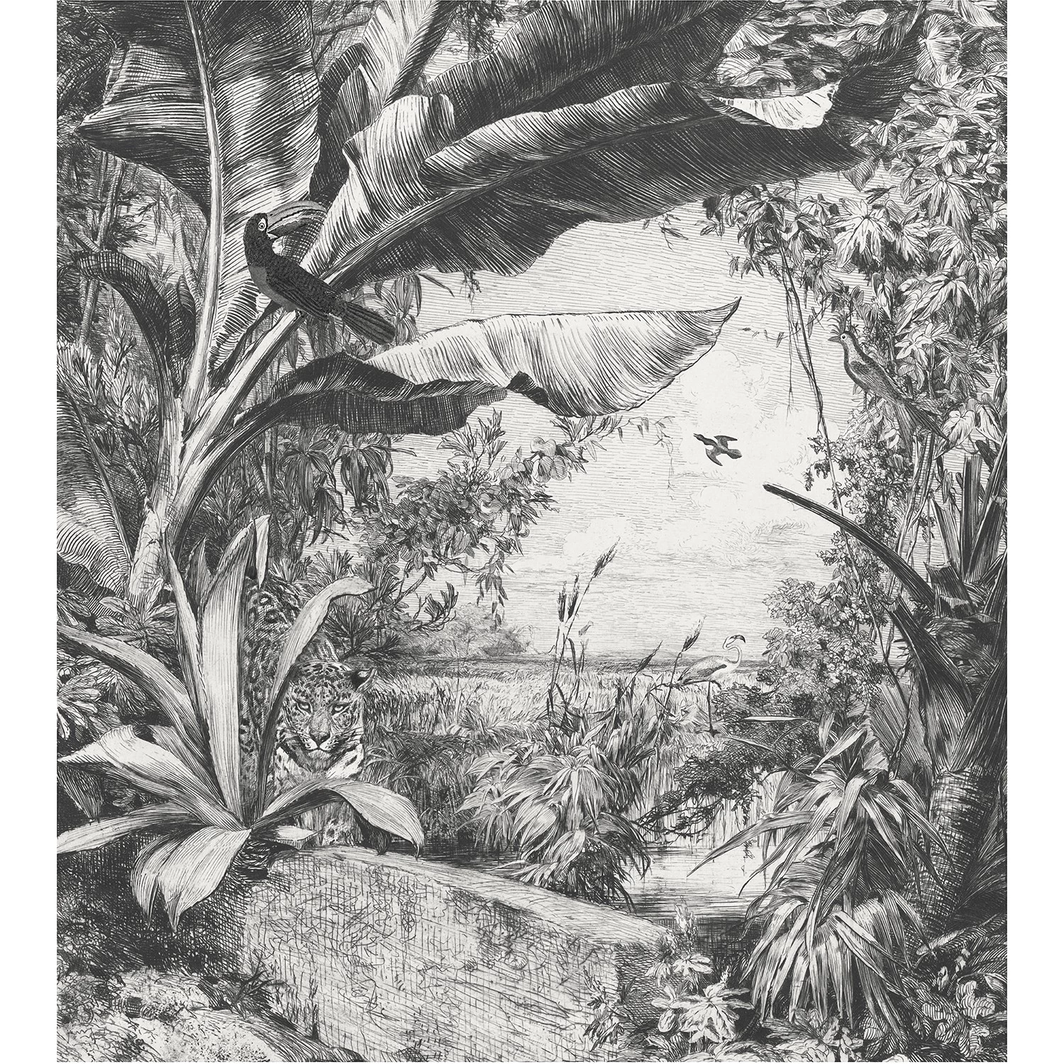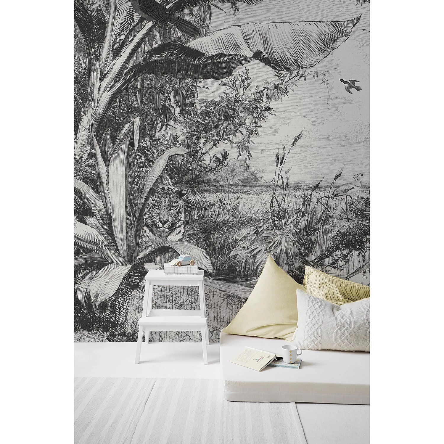 Artgeist Papier peint intissé Night Palm Trees – Intissé – Noir / Blanc – 400 x 280 cm