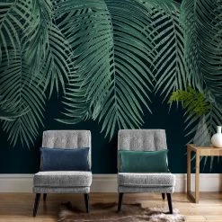 Artgeist Papier peint intissé Night Palm Trees – Intissé – Noir / Blanc – 400 x 280 cm